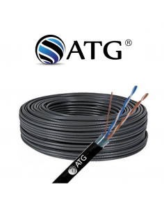 MARCA: ATG CARACTERÍSTICAS:  2 conductores de alambre multifilamento de cobre electrolítico 0.81mm de diámetro. (7 hilos de 0.39mm)  Aislación PVC Negro/Blanco. Cordón de desgarre de hilo de poliamida. Cubiertos con cinta de Poliéster. Marcación sobre cubierta, de tipo de cable y metraje. Diámetro externo 5.8mm aprox. Cubierta Exterior de PVC Color Rojo...